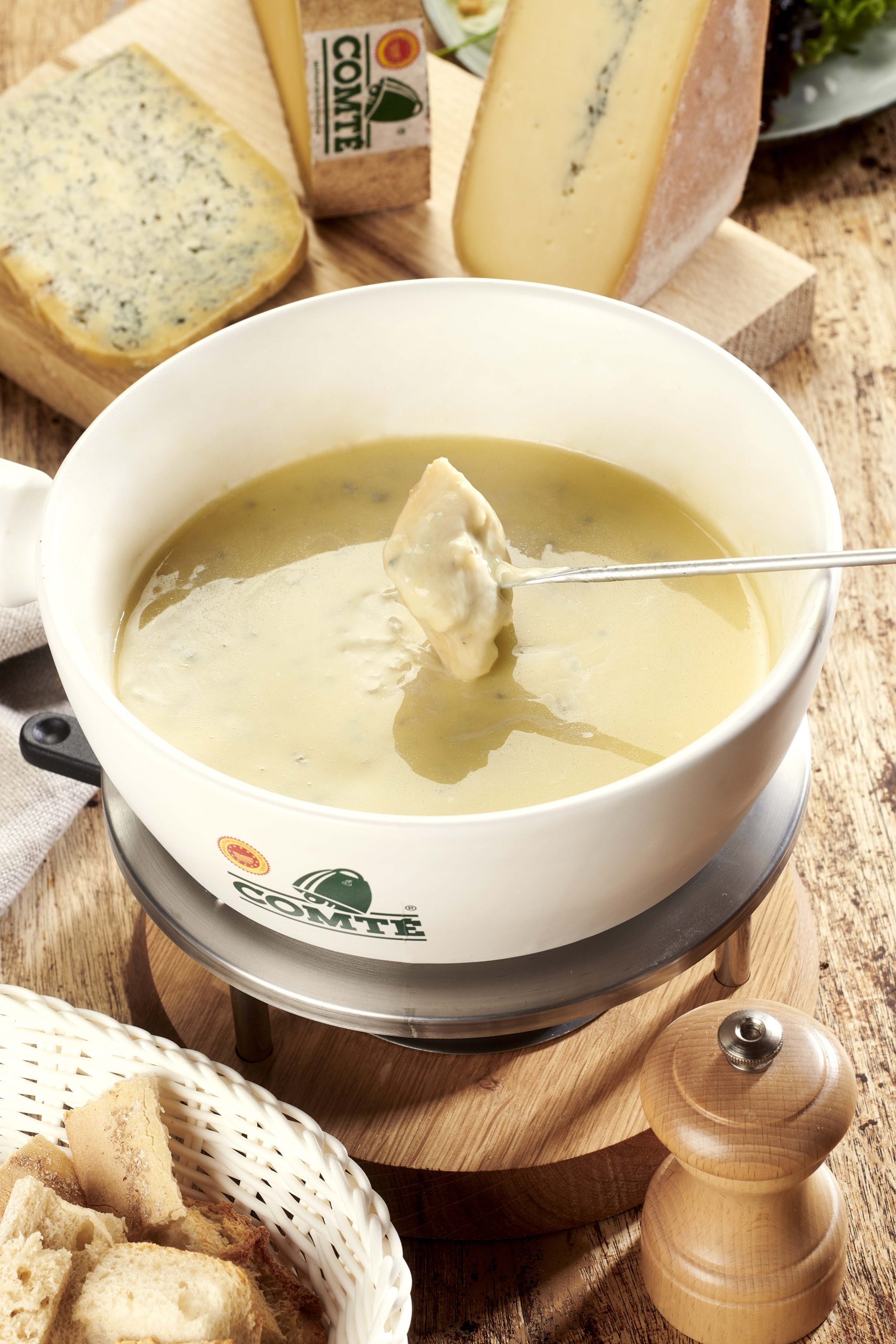 Om die aromatische rijkdom te vieren, presenteert een samenwerking met culinair creator Whoogy’s een herinterpretatie van de klassieke fondue, opgebouwd rond drie rijpingsstadia. Voor dit winterse comfortgerecht heb je nodig: 500 gram jonge Comté, 300 gram fruitige Comté (15–18 maanden gerijpt) en 200 gram oude Comté (meer dan 30 maanden), aangevuld met 40 cl vin jaune (Côtes du Jura BOB) en één teentje knoflook.