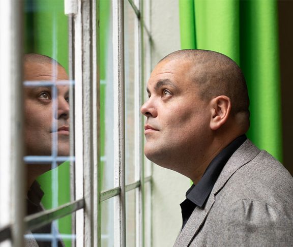 “Ik was altijd al de grapjas aan de toog. Voor een fles rum liet ik me ooit uitdagen om één mop op een podium te vertellen en ik was meteen verkocht. Daarna volgde Comedy Mania, waar ik tot mijn verbazing meteen de finale won. Vijf jaar lang trok ik door het open-miccircuit, vaak voor twee drankbonnen per avond. Voor een rum-cola moest ik zelfs bijbetalen (lacht). Via wedstrijden belandde ik in voorprogramma’s van bekende comedians, en door mijn tv-optredens kent nu ook de rest van Vlaanderen mij.”